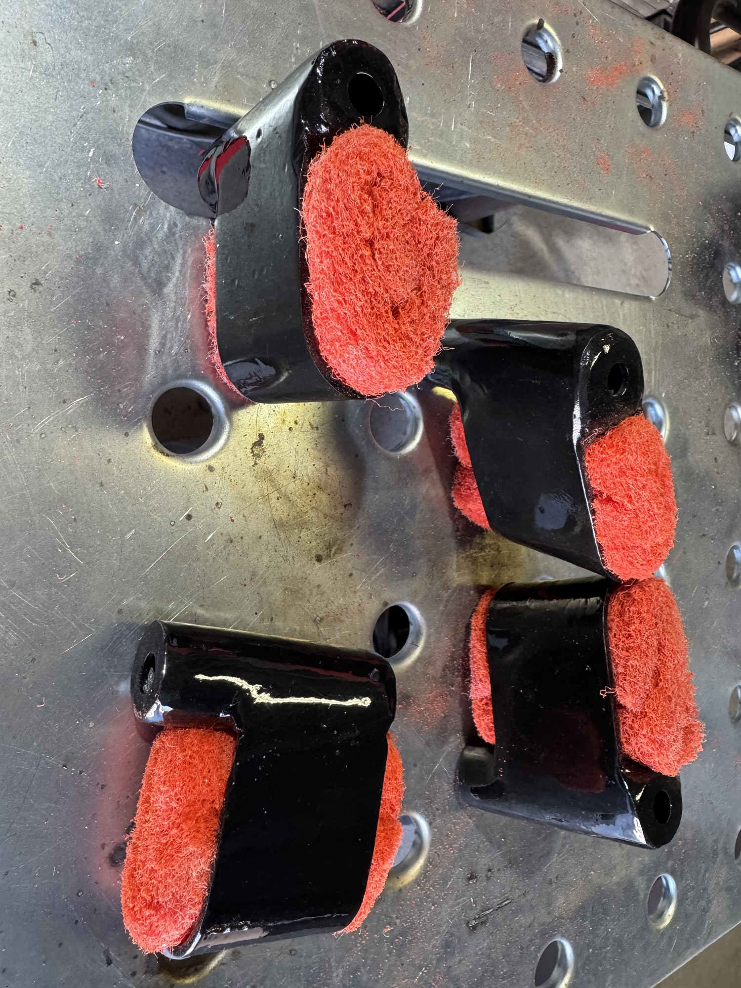Some folks have similar designs as mine, but if you want to be critical, then notice mine are rounded (and not square)…and bolt much differently that others, and I don’t use foam pads. I prefer the orange scotch brite pads for ultimate cleaning action, and way longer life than the cheaper foam. For over 25 years in my collision center we used scotch brite of many different colors. Different colors are different grit action. These orange pads as shown here are some of the best for the cleaning they give to our saw blades. This has added many hours of use out of each blade/band I use on my sawmill.